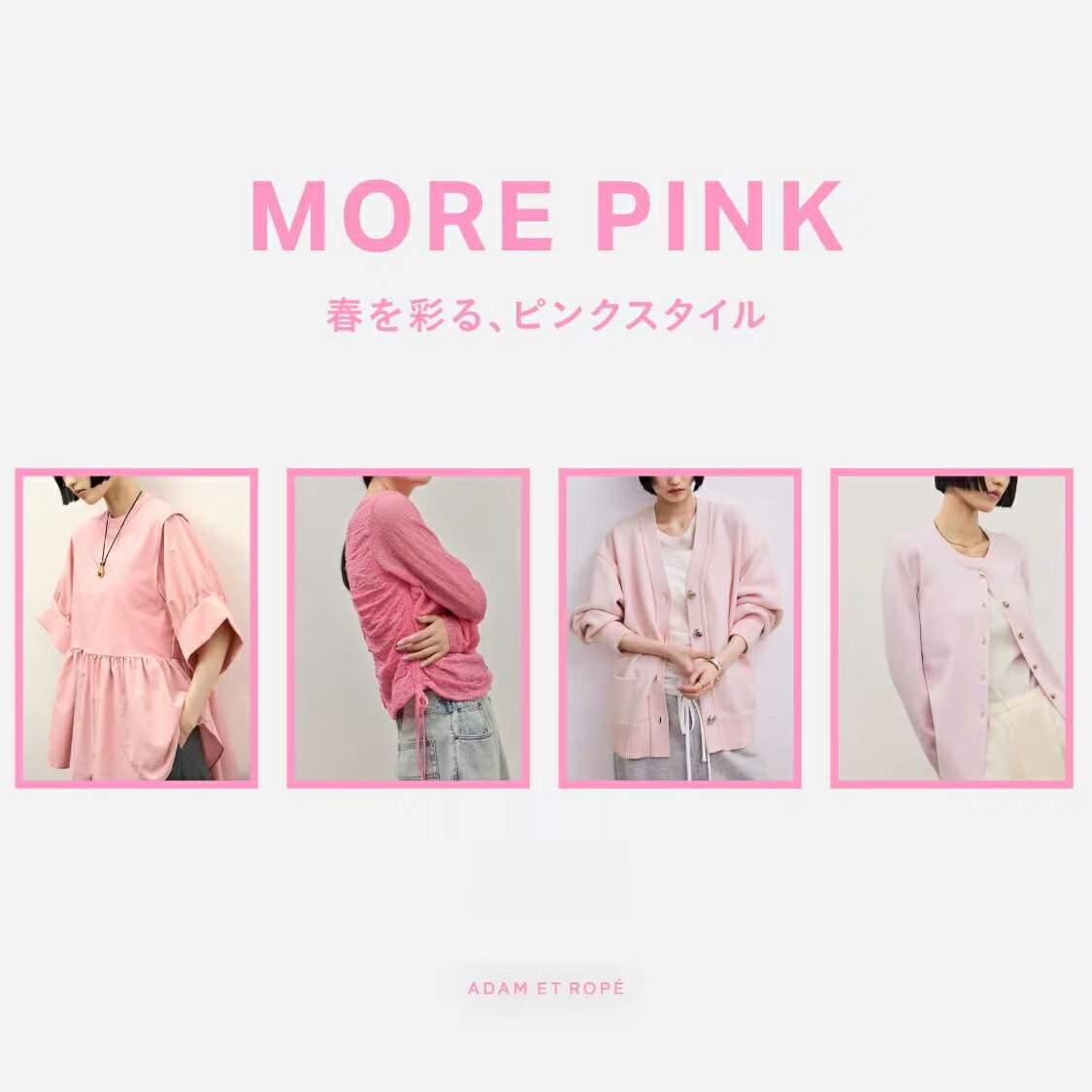 MORE PINK|春を彩る、ピンクスタイル 装いにやわらかな彩りを添える“ピンク”。 ひとさじ加えるだけで、軽やかな華やぎが生まれます。 甘さに寄りすぎないニュアンスで、今の気分にフィットする一着を。 ADAM ET ROPÉの春のピンクアイテムをご紹介します。【ADAM ET ROPE’ FEMME】