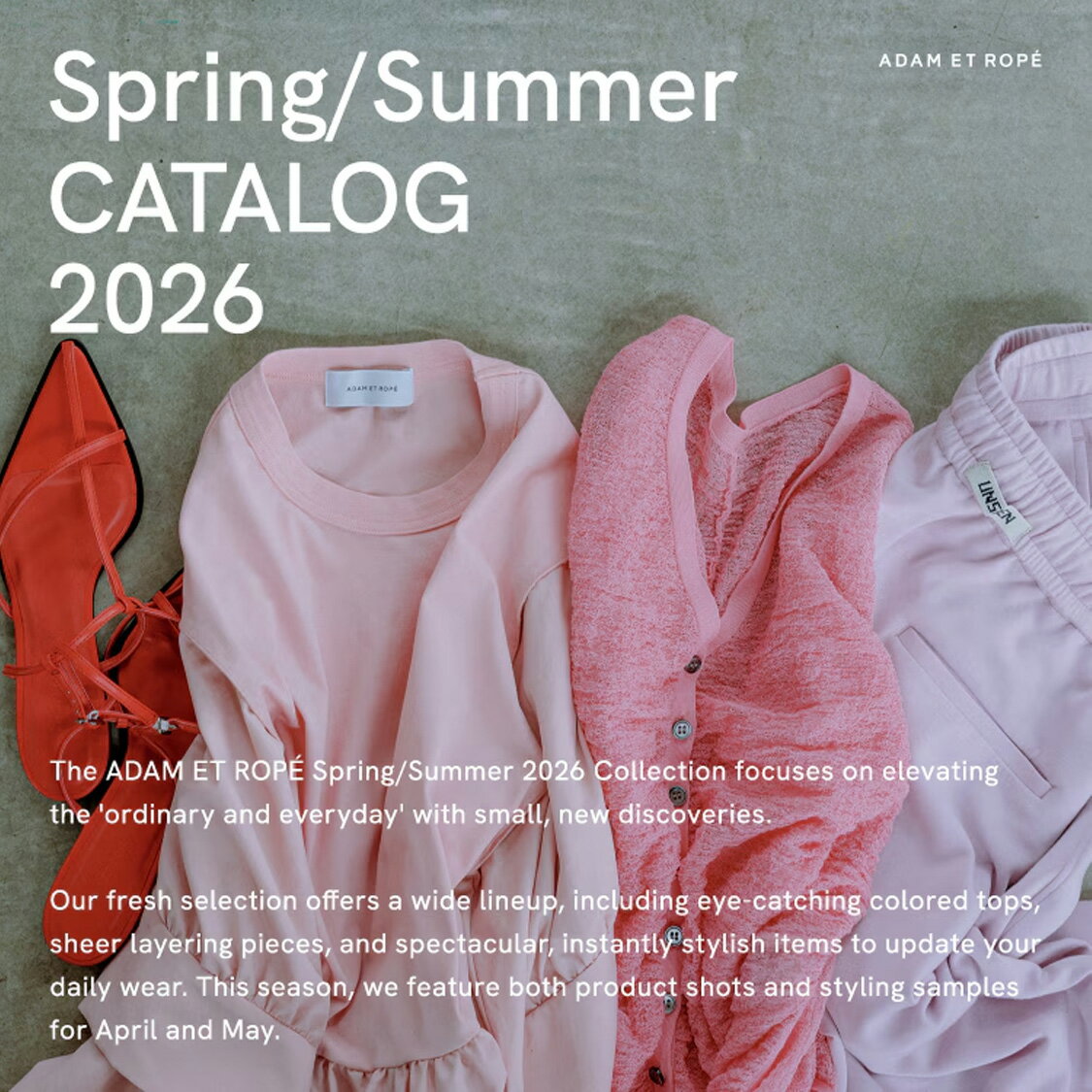 ADAM ET ROPÉ 2026年春夏アイテムより、日常をアップデートする新作が続々登場。トレンドのカラートップスや透け感が美しいシアーアイテムなど、最旬ラインナップを一挙公開します。着回しに役立つスタイリングサンプルも必見です。|ADAM ET ROPE' FEMME