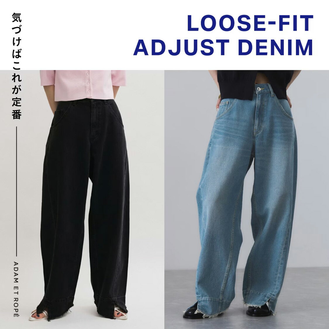 ADAM ET ROPÉのスタイリングに欠かせない定番デニム「ルーズフィットアジャストデニム」。シーズンレスで穿ける万能さと、今の気分にフィットするルーズシルエット。一本あれば着こなしの幅が広がります。長年ファンから支持され続ける名品です。|ADAM ET ROPE' FEMME