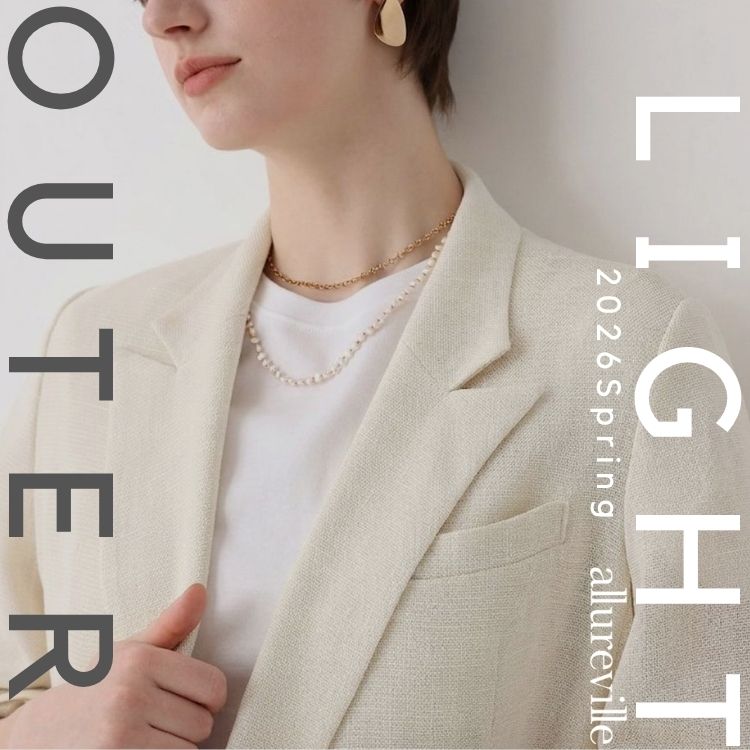 フェミニン、エレガント、マスキュリンのスパイスをバランスよくミックスし、さまざまなシーンに対応したスタイルを提案する「allureville(アルアバイル)」。いつもポジティブな自分をもち、上品で常に遊び心を持った女性に向けたセレクトブランド。上質な物作りにこだわり、時代に合わせて進化させたスタンダードな「アルアバイル」と、ドレスラインに特化し、MOONとSUNというカテゴリーをもった「ルルウィルビー」のふたつのオリジナルに加え、国内外から買い付けたアイテムをテイスト、シーンごとにミックスしてスタイリング。