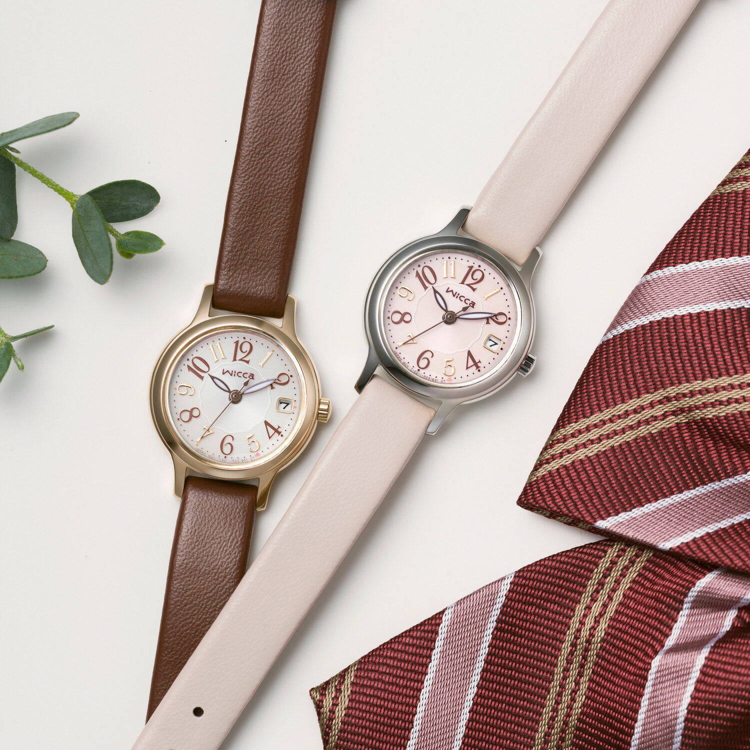 【CITIZEN wicca】可愛らしく大きめのアラビア数字は視認性バツグン。どんな服にも合わせやすいベーシックなブラウンカラーのバンドは、ペットボトルのリサイクル素材「エコペット」を使用し、環境にも優しい腕時計です。
