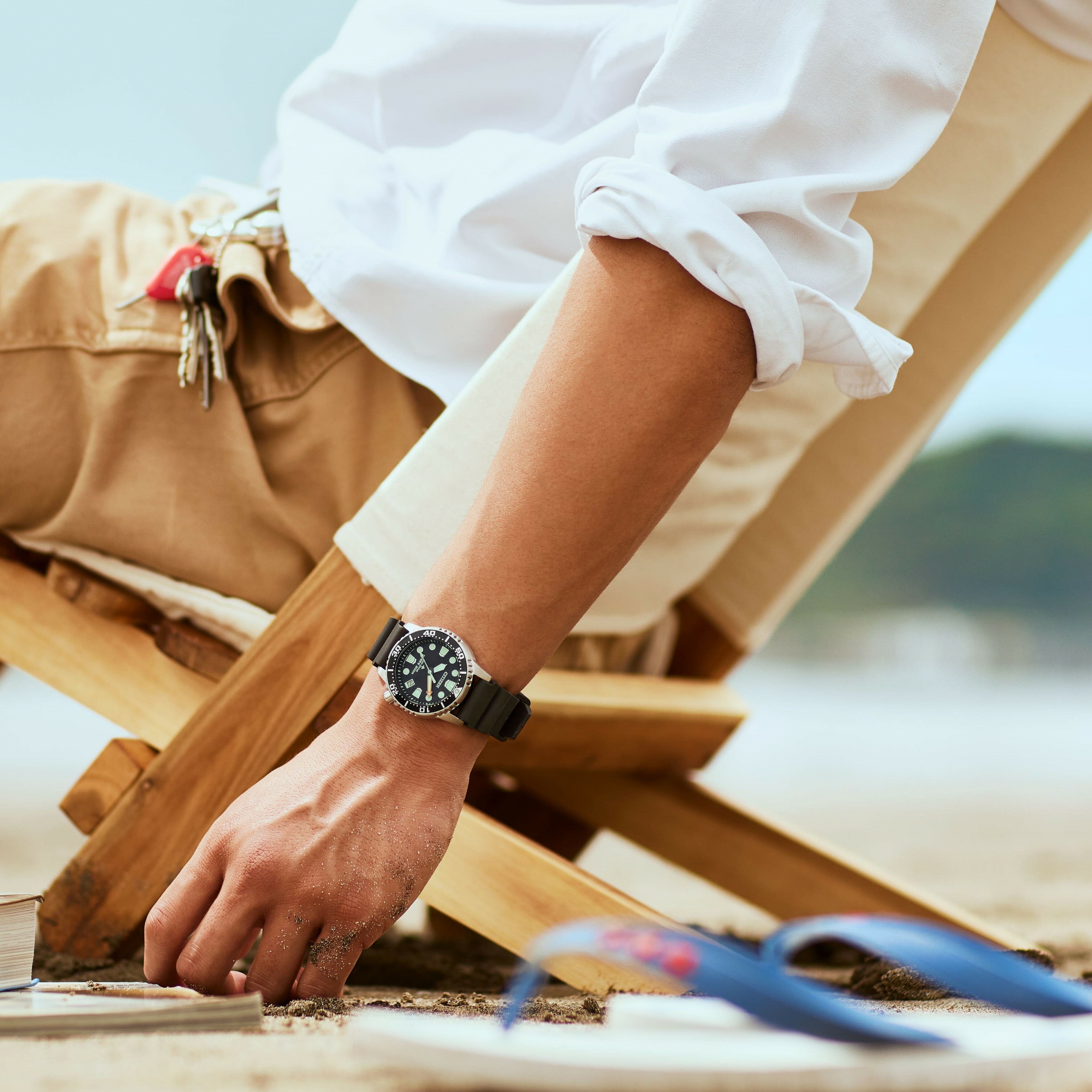 【CTTIZEN PROMASTER】ISO規格をクリアした本格仕様のダイバーズウオッチ、プロマスター「MARINEシリーズ」にケース径約37mmのボーイズサイズが登場。絶妙なサイズ感が、手首の細い女性や男性にフィットし、ペアウォッチとしても楽しめるモデルです。