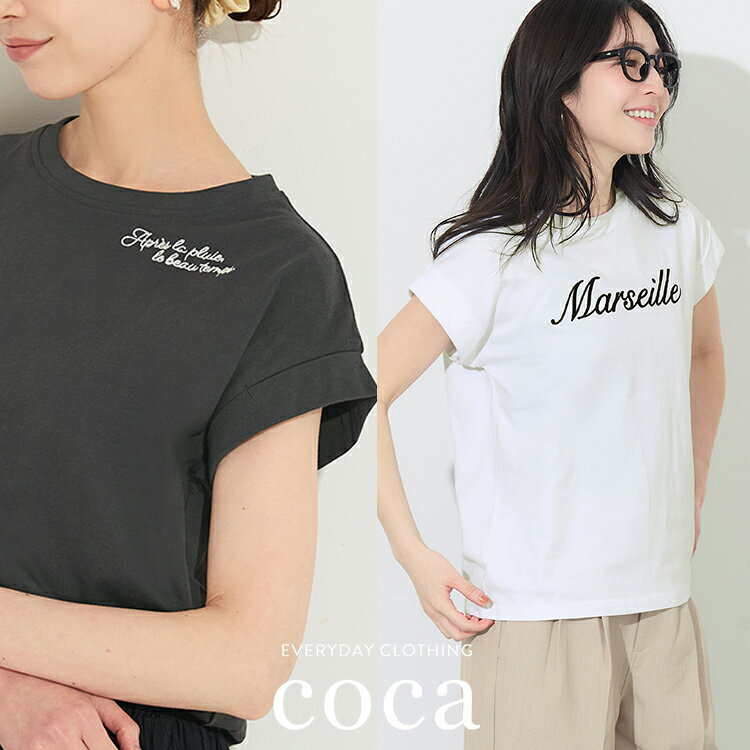 【coca】さりげない刺繍が映えるTシャツ🌿首元から肩にかけてのさりげない刺繍と、フロント刺繍がポイントのTシャツ。 デザインは2種類、カラーはそれぞれ2色展開でご用意しています。 シンプルながらも程よいアクセントがあり、デイリーに取り入れやすい1枚です。