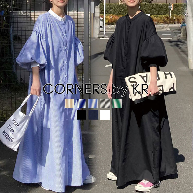 「5年愛される名品ワンピース、再入荷。」CORNERSで長く愛され続ける人気アイテム **「ボリュームスリーブストライプシャツワンピース」**が再入荷。 ふんわりとしたボリューム袖と、 すとんと落ちるロングシルエットが魅力の一枚。 体のラインを拾わず、 さっと着るだけで大人のこなれたスタイルが完成します。
