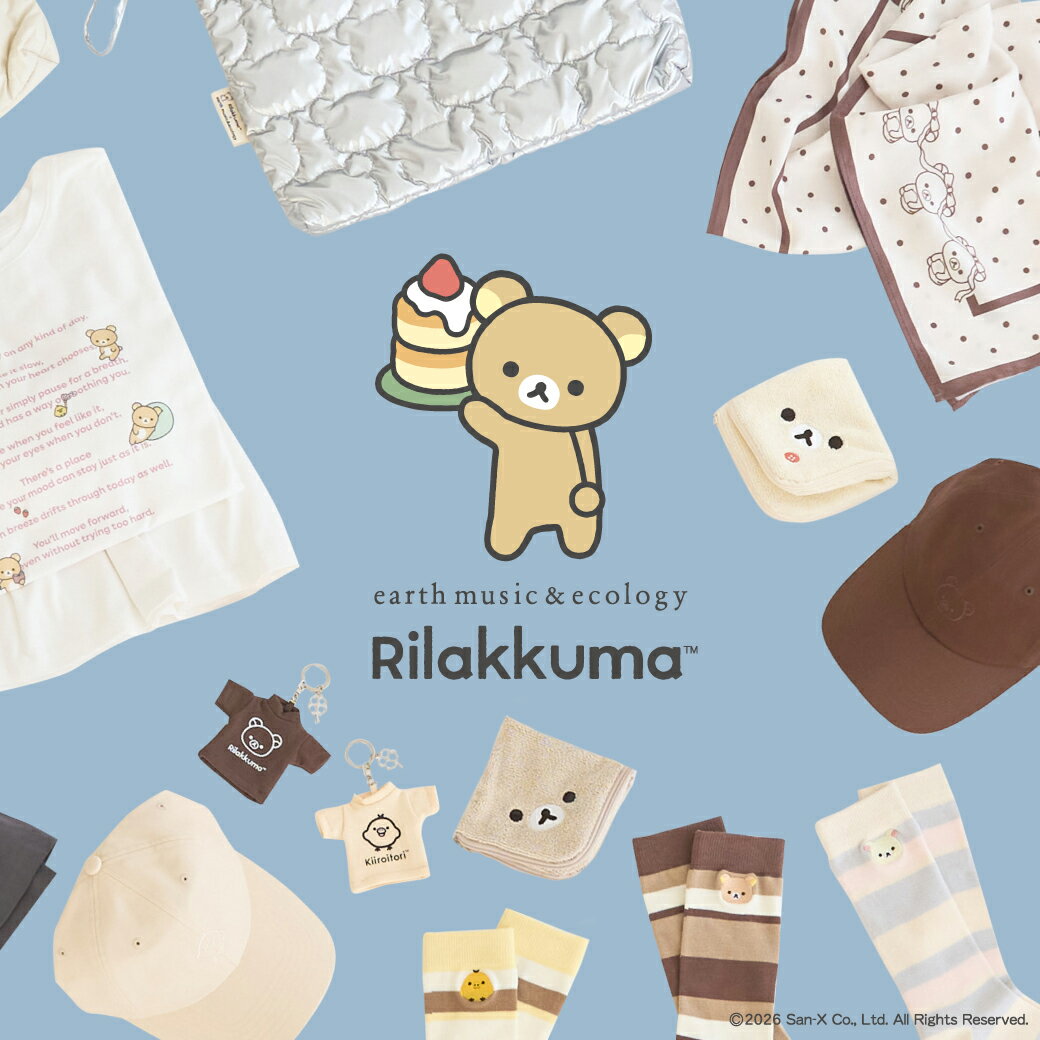 【earth music&ecology】大人気「リラックマ」とのコラボアイテムが登場! ナチュラルで可愛い、デイリー使いしやすいアイテムをラインアップ♪ リラックマたちの優しい世界観に、ぜひ癒されてください。