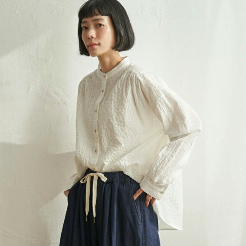 シンプルなのにおしゃれ見え。LBCこだわりのオーガニックコットンバンドカラーシャツ♪