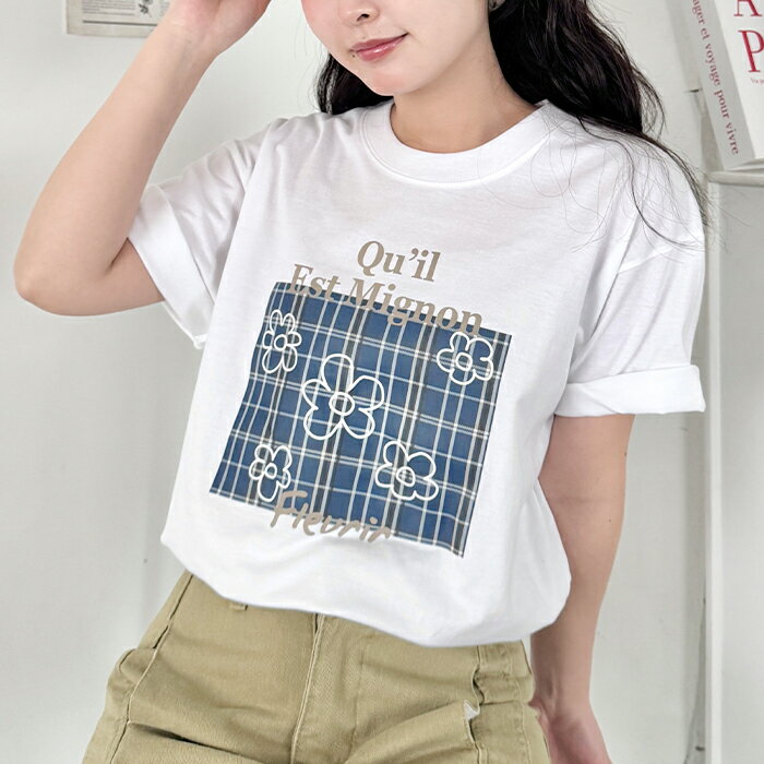チェック×フラワー×ロゴが目を惹くゆるっとTシャツ!