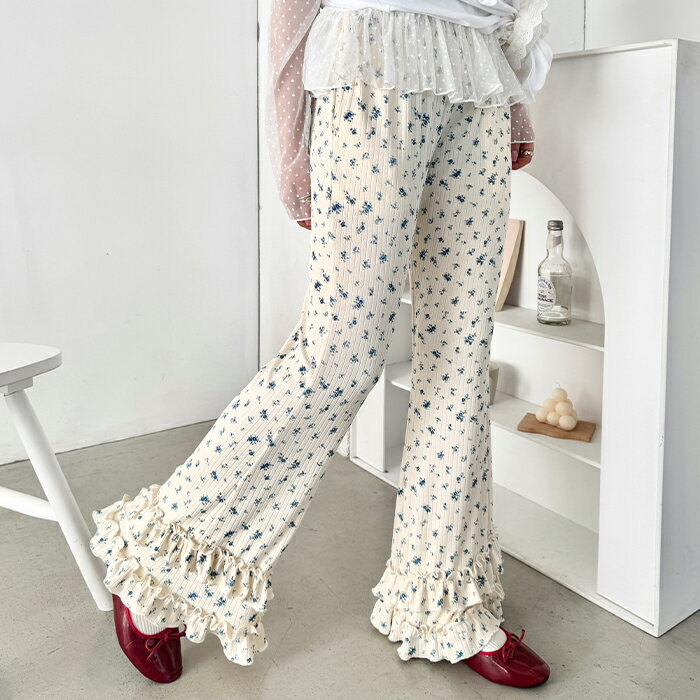 SOLLON.オリジナル!ダブルフリル花柄フレアパンツ♪
