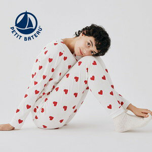 おうちでのリラックスタイムに、プチバトーのパジャマを。全面に散りばめられた赤いハートが愛らしいデザインです。もちろん着心地はプチバトー品質。やわらかなコットンが優しく肌を包み込み、快適な眠りへと誘います。