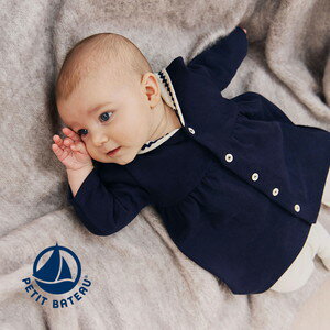 【プチバトーのオケージョンコーデ】 ベビー女の子の特別な日の装い。お宮参りやお食い初め、保育園入園など、特別な日にぴったりの上品な一着。小さな襟が可愛らしく、記念写真にもよく映えます。肌触りの良い素材でベビーも快適。大切な日の思い出作りにいかがですか?