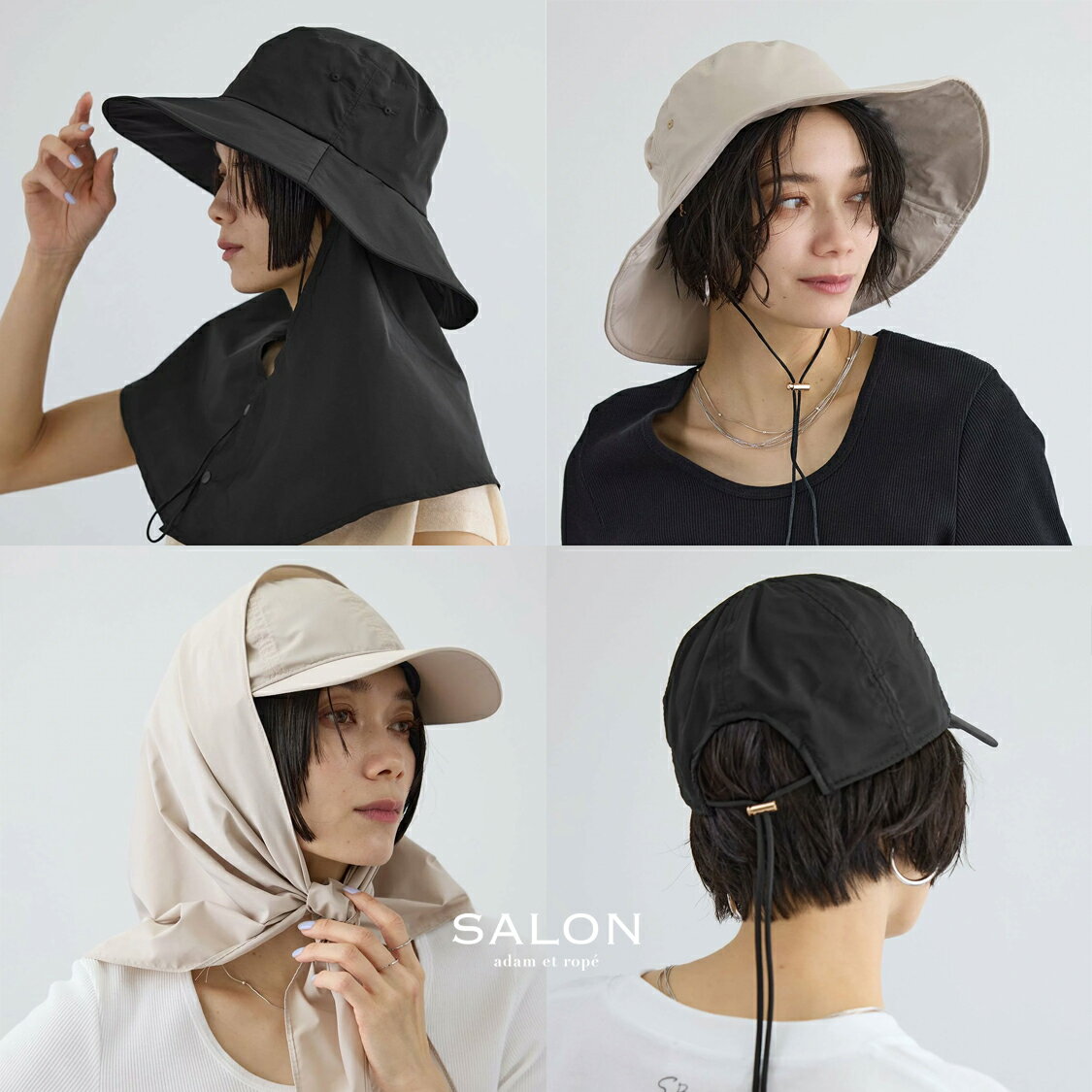 NEW ITEMS - 撥水シリーズ-|昨年も大好評だったレイヤーハットがアップデートして登場。今季はスカーフ付のミニマルなキャップやコンパクトな2WAYリュックもラインナップ。ぜひチェックしてください。【SALON adam et rope'】