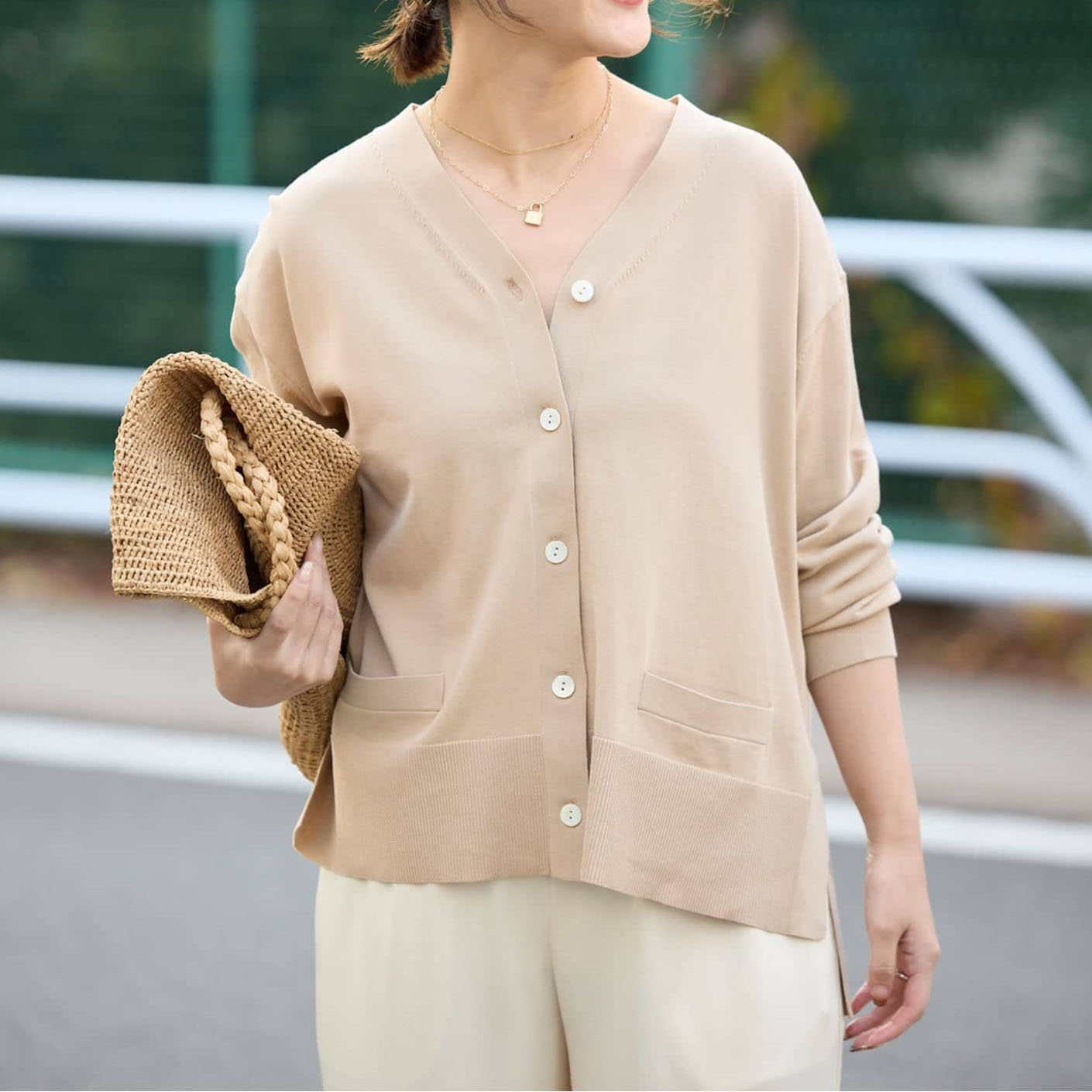 接触冷感、UV機能、抗菌性のある機能性を兼ね備え、これからの時期に羽織りやすいカーディガン!ゆったり着られるVネックで、ON/OFF兼用でお使いいただけます。