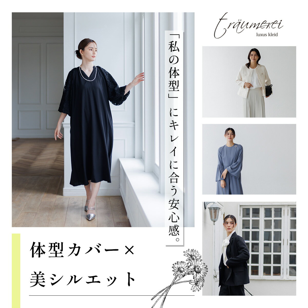 【体型カバー×美シルエット】着るだけで整う、私のためのドレス。豊富なサイズ展開でぴったりが見つかる!!