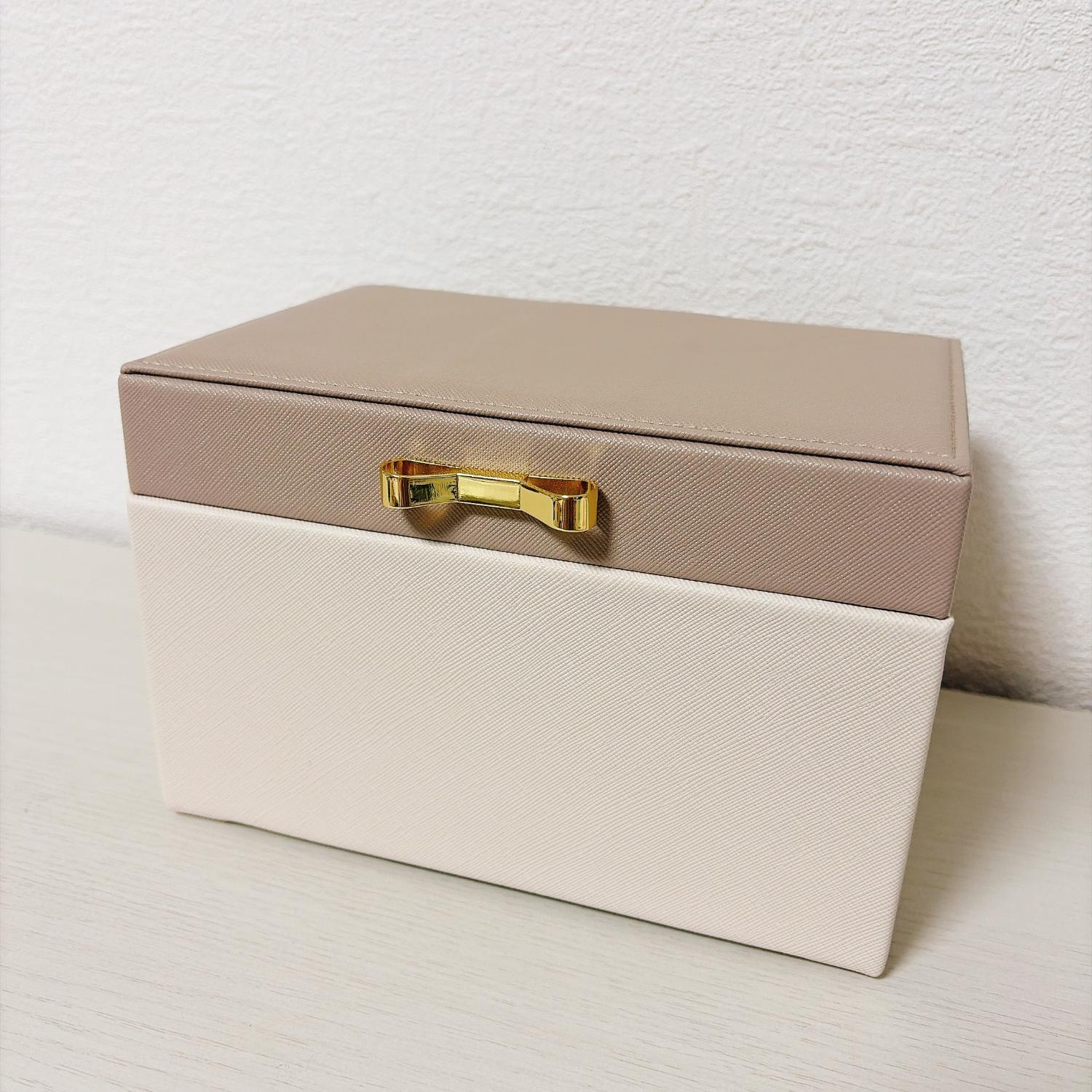 優しい色合いのバイカラーでとても可愛いです。 色々なジュエリーボックスが売っていますが、これー!!と思って買いました。 Francfrancは可愛い… ミラーも付いているので使いやすいです。