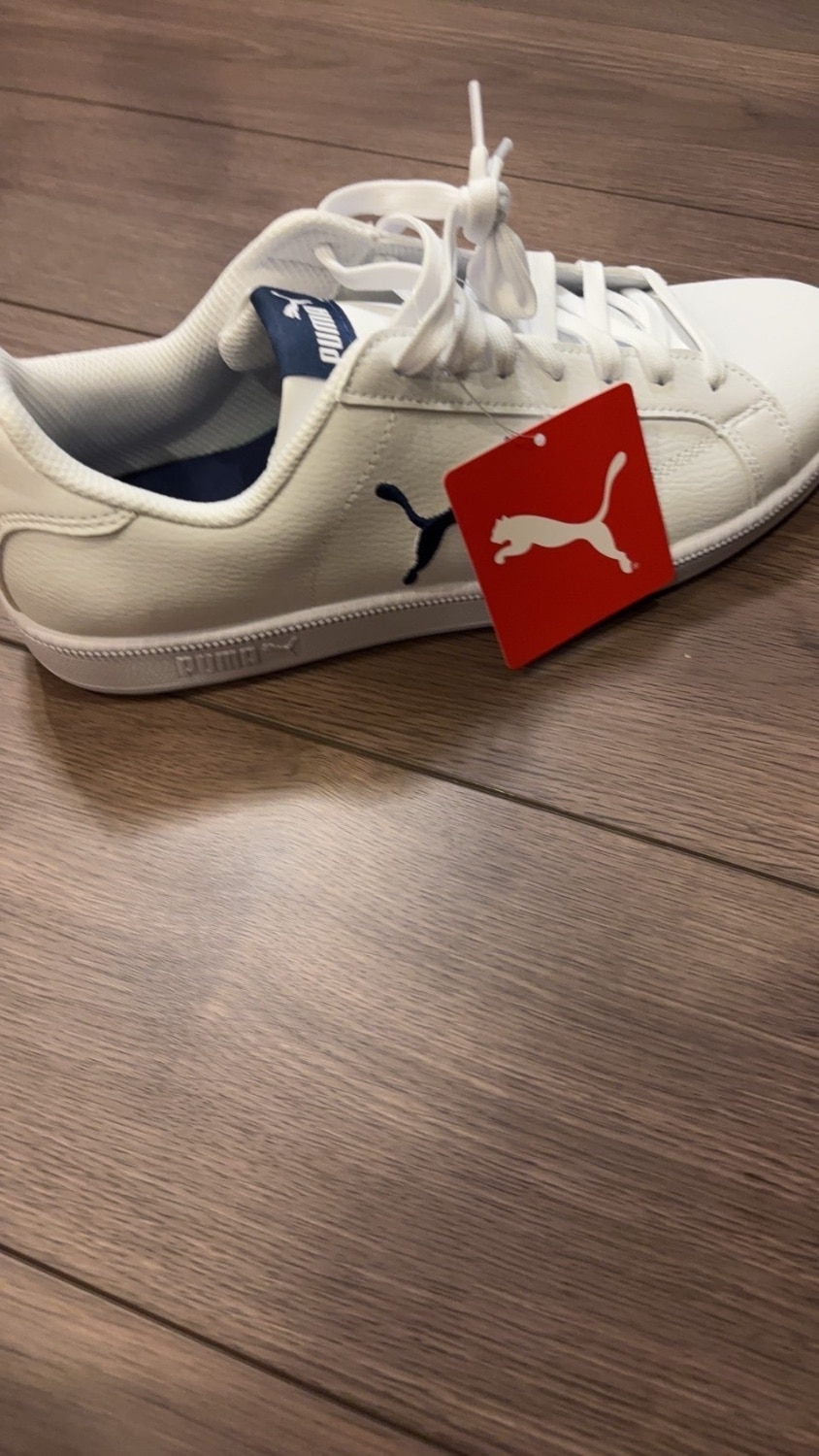 ホワイトのスニーカーを持ってなくて、ワンポイントでプーマの刺繍が入ってて気に入ったので購入しました。 紐が短かったので結びづらいので長めの紐に交換します。