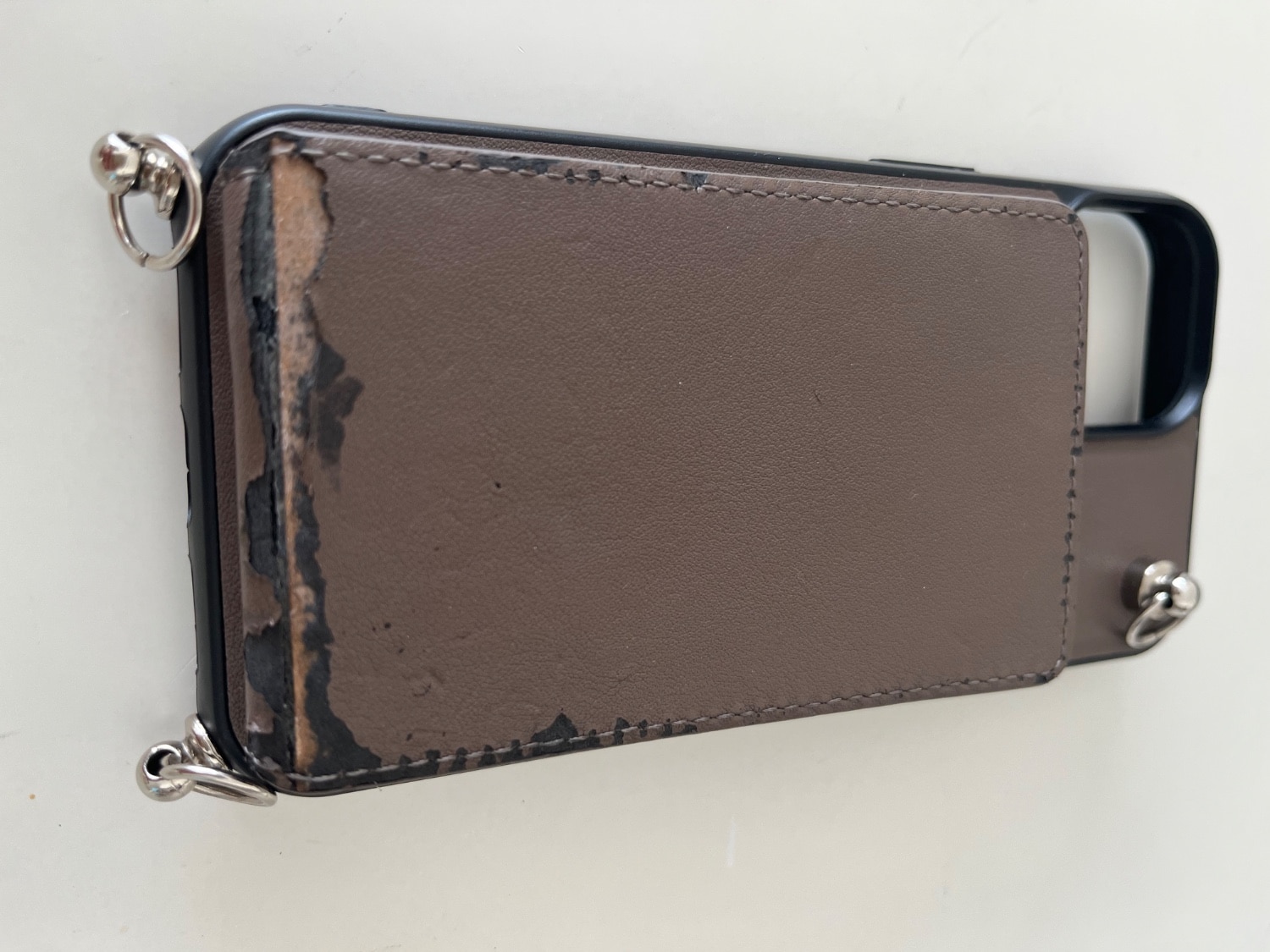 背面にカードポケットと拡大ミラーの付いたiPhoneケース。