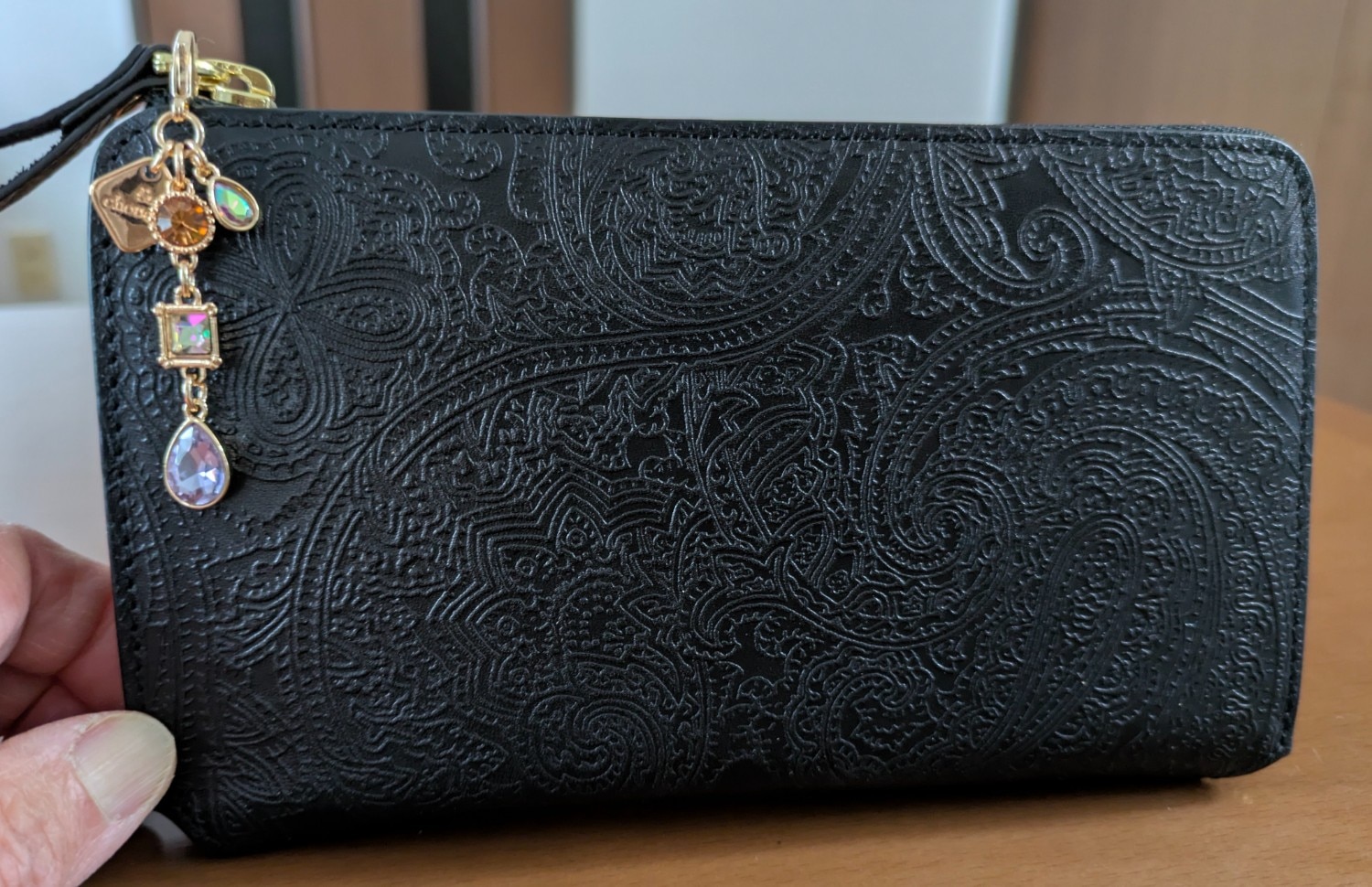 新調した黒の財布に。使うたびに上品にキラキラ揺れるチャームがお財布のベーシックな表情を引き立ててくれています。色々探してみてこれに決めましたが、思い通りの素敵なイメージになり大満足です。お値段以上の良いお買い物でした!