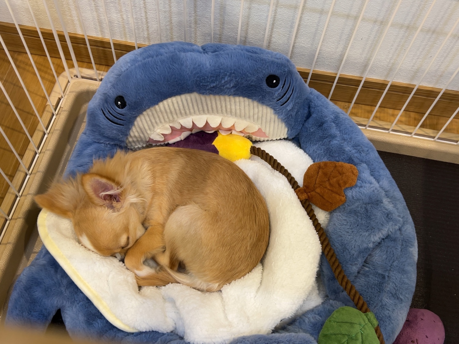 Mサイズ、グレーの鮫を購入。 良かった。愛犬は気持ち良さそうに寝ている。 思ったより中の部分が薄いけれども、 枠はふかふか厚め。鮫の顔部分も持ち上がっていて良い枕感。尻尾側も立ち上がりがあると、向きを変えて寝やすいかな。 夏はのびのび寝る愛犬(中型犬)には Lサイズの方が良さそうです。