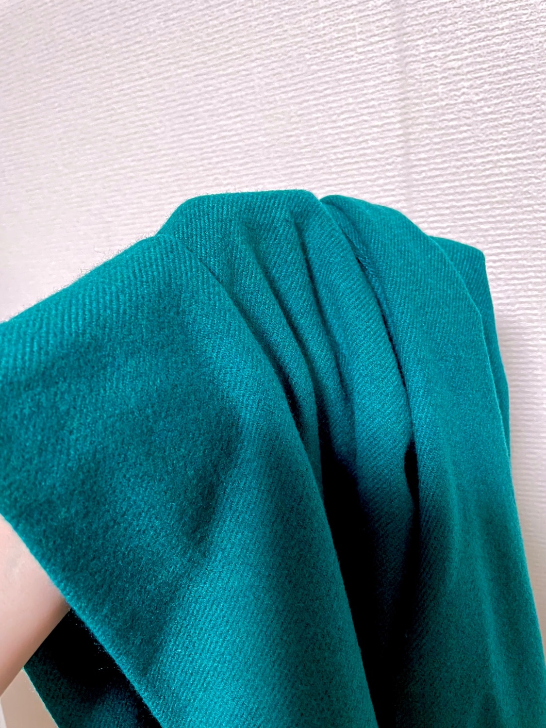 ブルーグリーンが好きなので購入。実物は結構濃いめのグリーンでしたがいいお色です。肌触りは良いし薄手ながらも大判だから冷たい風も防いでくれました。