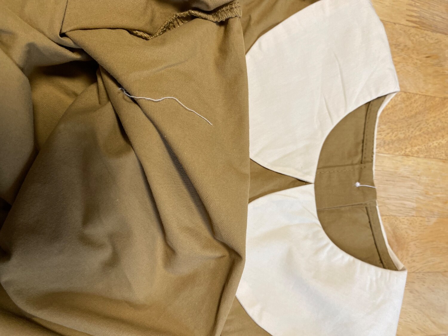 バイカラーの大きな襟が特徴的なキッズブラウス。