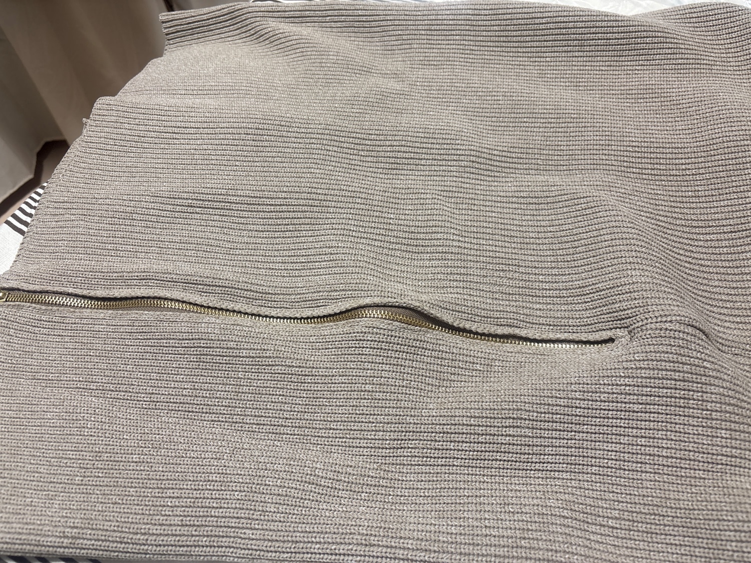 上品な裾のファスナースリットがアクセントになったニットワンピース。