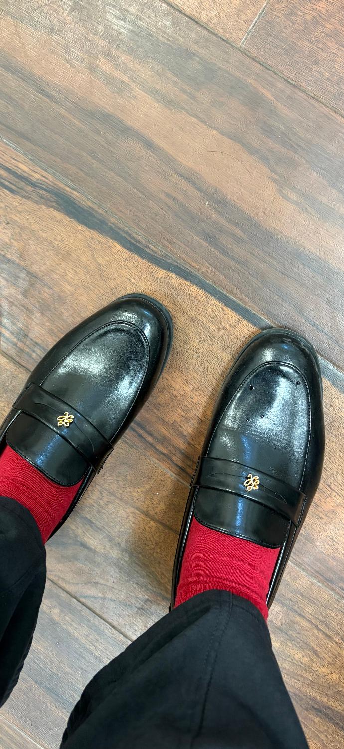 ・定番的なワークスタイルにも少し深めのこのローファーを合わせると今までと変わった雰囲気になるのでおすすめ。
