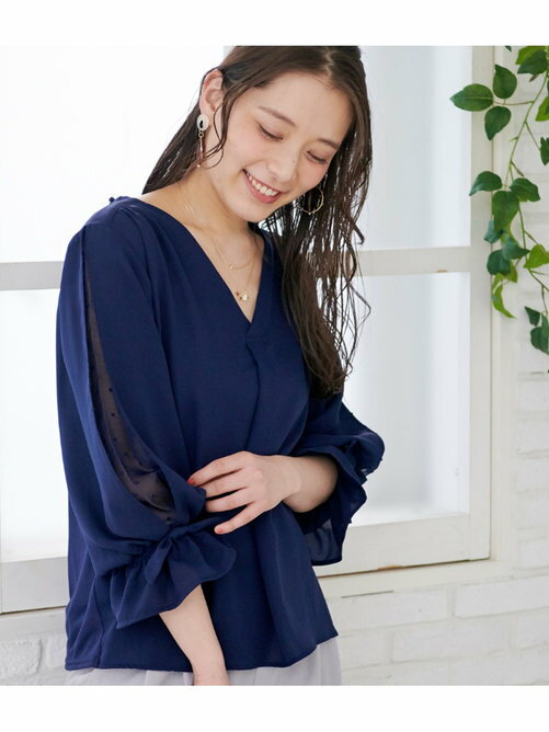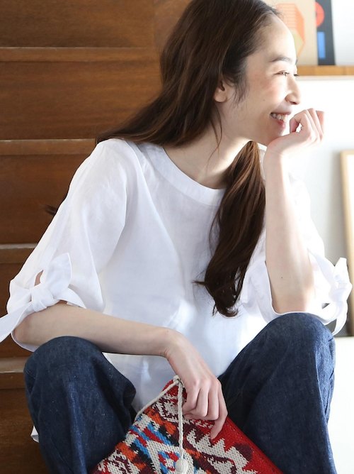甘くなりすぎずにポイントを作りたい方にはさりげばい袖リボンのブラウスが◎