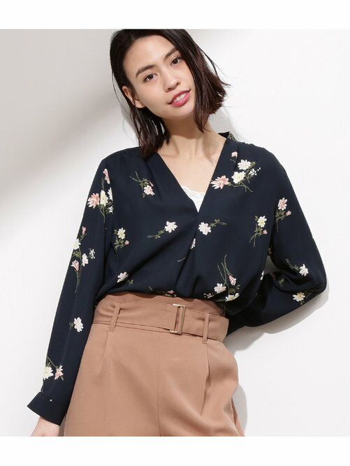 華やかな総柄もブラウスなら気負わずチャレンジできて◎
