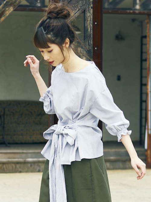 ウエストをしゅっと絞ったブラウスは手軽に女性らしいシルエットが完成!