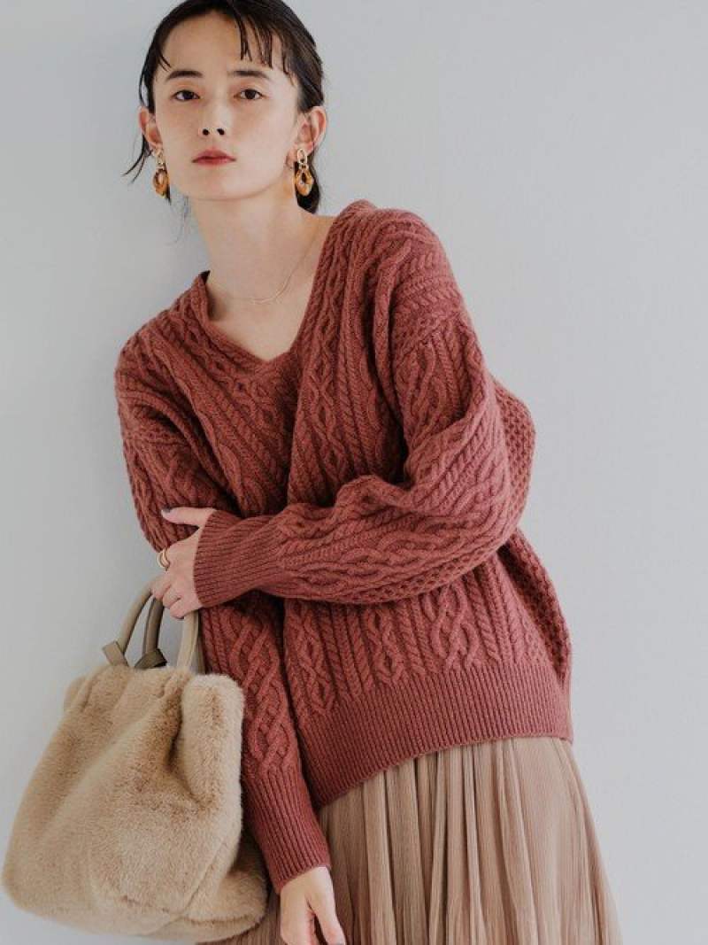 ニットの定番であるケーブル編みは、デザイン性の高いもので周りと差をつけるのが気分。