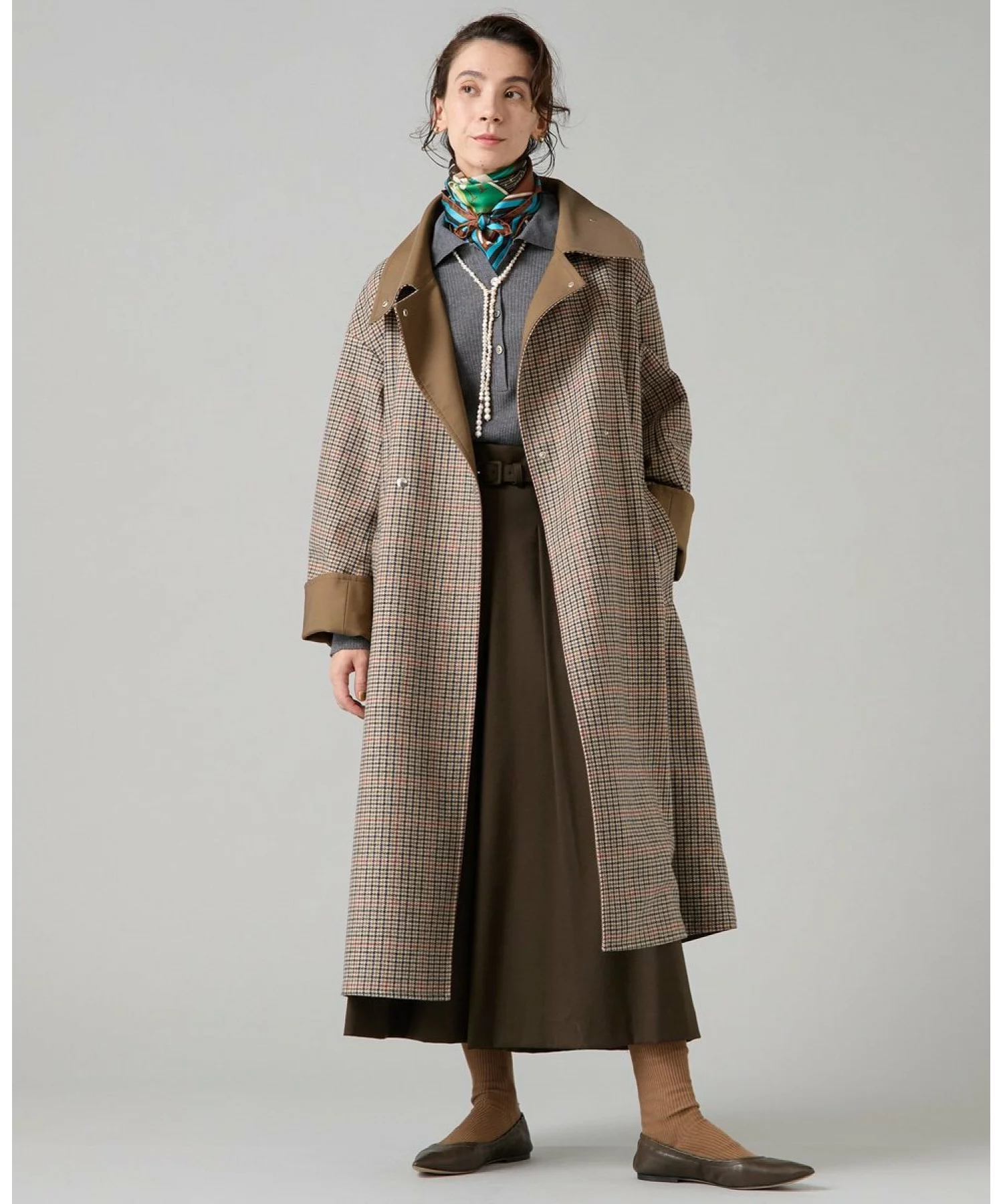 人気スタイリスト、大草直子とのコラボレーションで提案するのは、着こなしの幅が広がるリバーシブルコート。表はクラシックなツイード素材のチェック柄、裏はシンプルな無地をハリのあるツイル素材で仕上げ、スタイリングや気分に合わせて印象をスマートに変えられるデザインに。