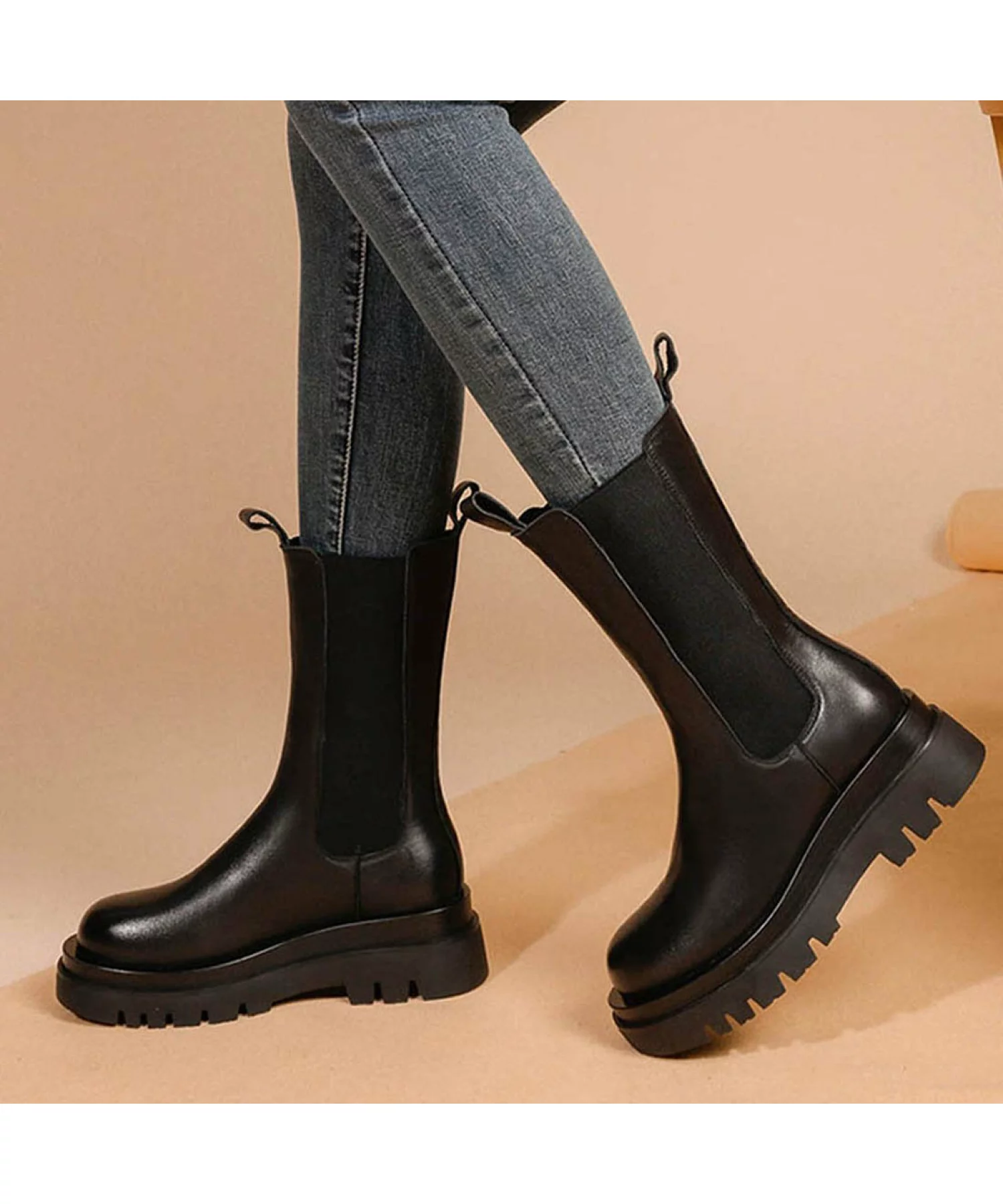 あらゆる着こなしに合わせやすい、ミドル丈のブーツ。足をきれいに見せてくれるシャフトのシルエットは、冷たい風が中に入りにくいのも利点。柔らかいフェイクレザーを使用し、着脱も楽々。