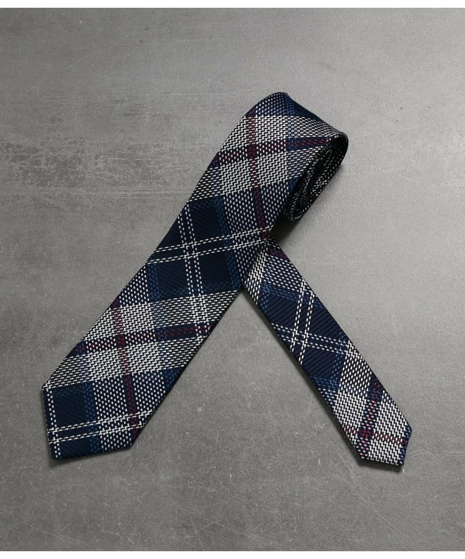 ビジネスシーンのみならず、ファッションの一部として楽しむ人も増えているネクタイは、人と被りにくい個性的なデザインが人気。シルク100%を使用し、上品な光沢感を放つ1本は、タイルアート風のチェック柄が首元を彩るアクセントに。