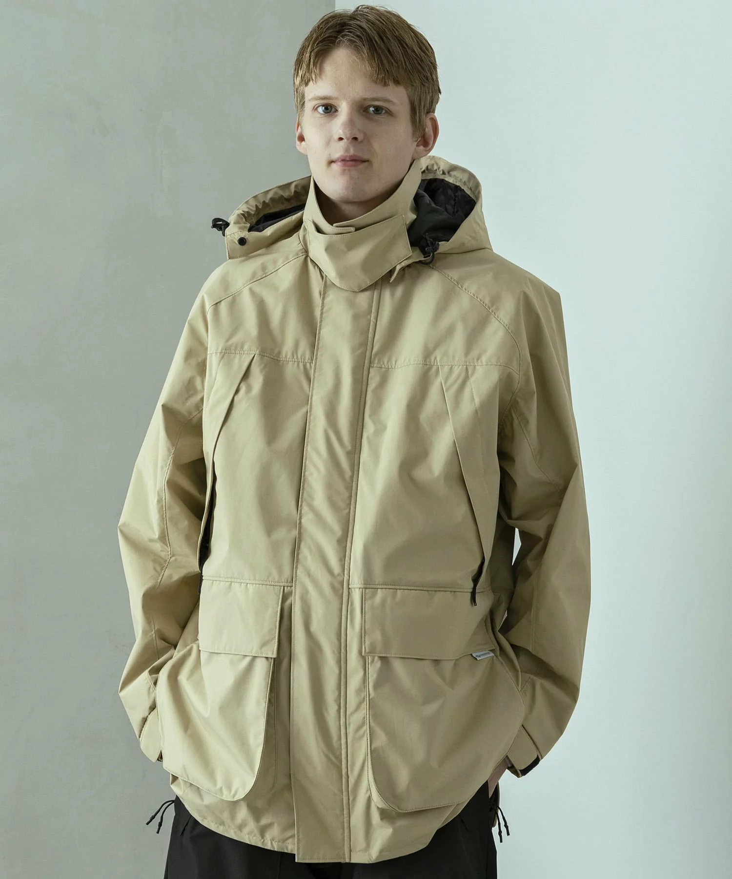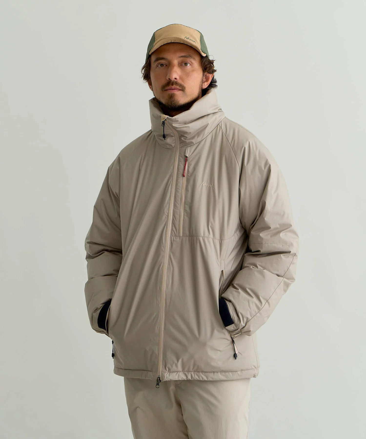 ダウンブランドの〈ナンガ〉は、スペイン産ダックダウンを使用した高品質なダウンジャケットを、すっきりとしたスタンドカラーに。ゆったりとしたシルエットで、ニットやパーカーなど厚手のトップスも重ね着しやすい。表地には、雨や雪を凌ぐ独自開発の防水透湿素材を採用。ジャケット内の湿気を外に逃し、どんな環境下においても快適な着心地を叶える。