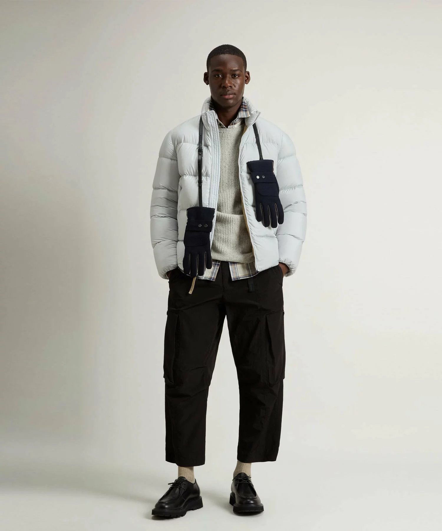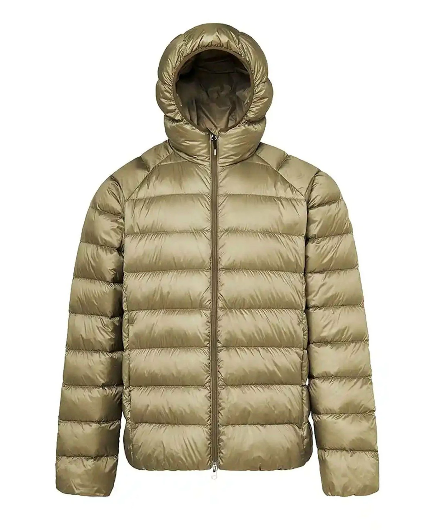 日常使いしやすい軽い着心地と見た目を両立したトレンドの薄軽ダウン。フランスのダウンブランド〈ピレネックス〉は、超軽量なナイロンタフタと保温性の高い上質な羽毛を採用。着こなし次第で春先まで活躍する。圧縮すれば付属の袋にも収納可能で、携帯性に優れる点も高ポイント。