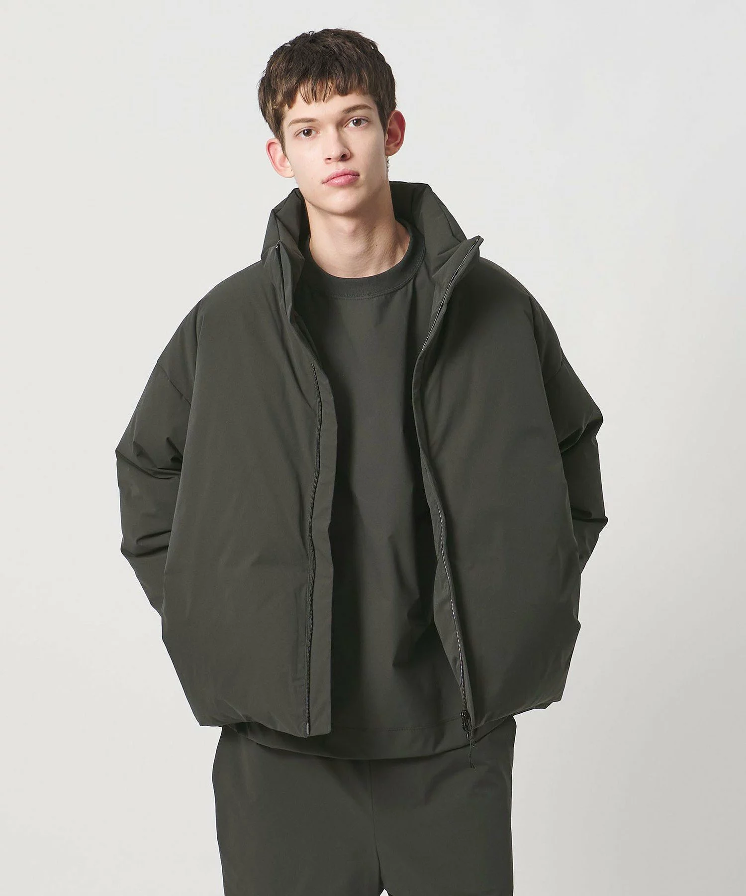 〈エヌハリウッド〉のデザイナー、尾花大輔氏と〈ユナイテッドアローズ〉によるカプセルコレクションから。ファブリックメーカー「小松マテーレ(株)」の生地を使用したジャケットは、高品質な900フィルパワーのダウンを採用。中綿をたっぷりと封入しながらもシームレスなデザインで品よく仕上げた。裾のドローコードでシルエットも調整可能。