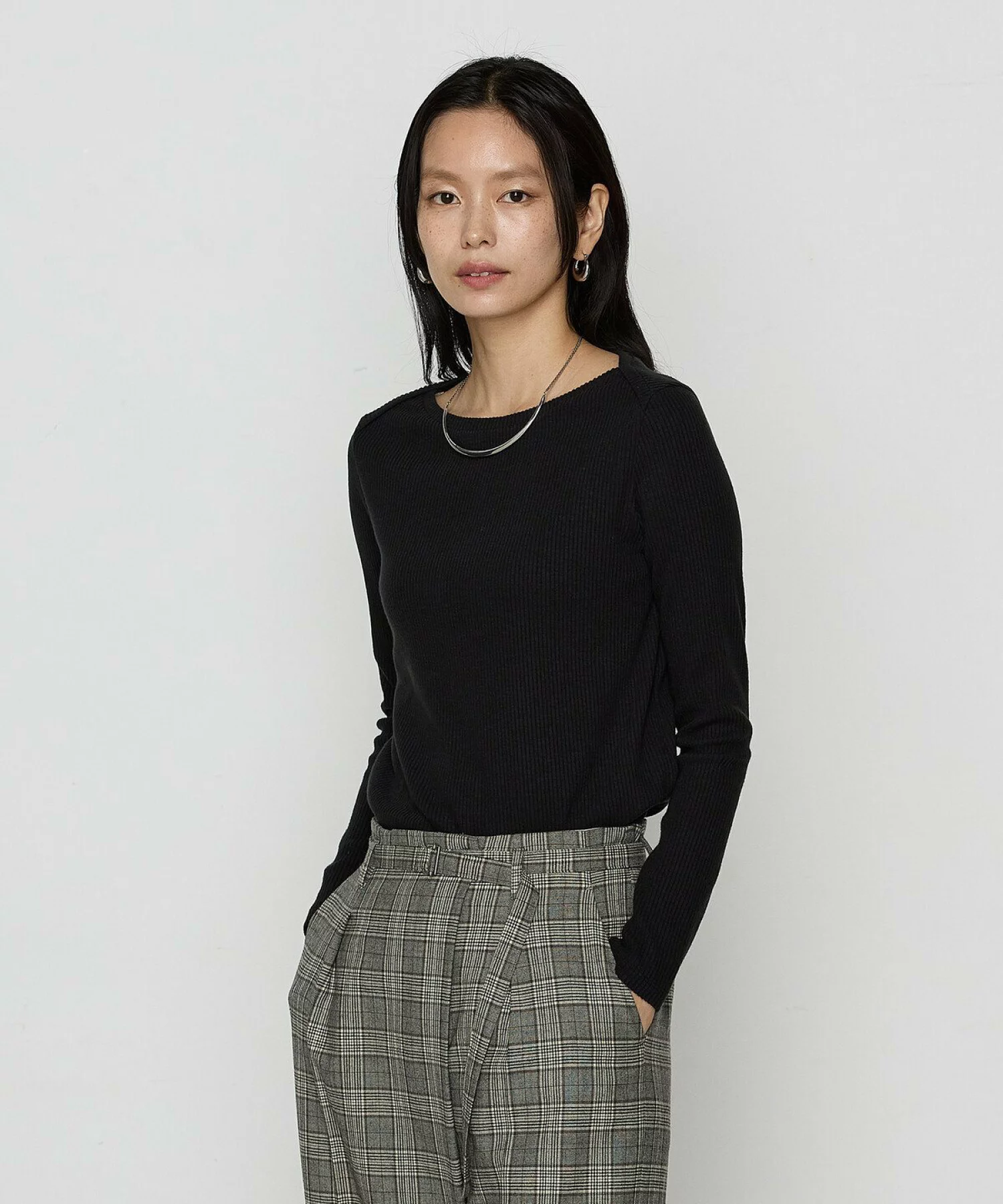 〈コムサ〉が手掛ける定番のリブニットに、首元がすっきりと見えるボートネックタイプが仲間入り。湿気や汗を熱に変えて肌を保湿する、特殊な素材を使用。インナーのように薄手でストレッチ性があるため、フィット感のあるニットやフーディを重ね着しやすいのも嬉しい。