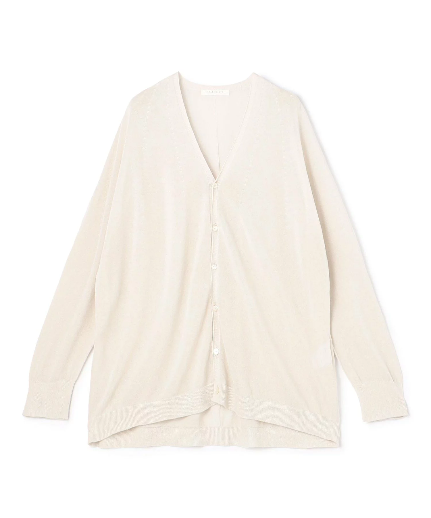 毎日のおしゃれに寄り添う、上質な服を展開する〈ギャルリー・ヴィー〉から。シームレスな仕立てのニットカーディガンは、保湿成分が含まれる調整剤を使用し、程よいとろみ感を演出。繊維をよく揉み叩いたコットン100%の生地によって、とびきり柔らかな着心地に。