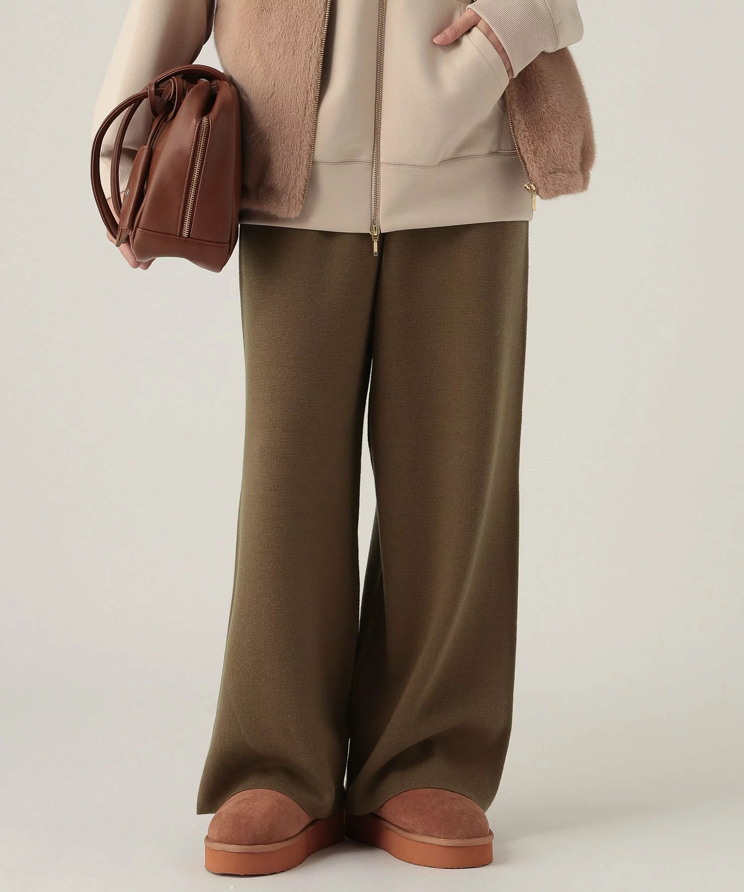 寒さ極まる今の時期に心強いのが、吸湿発熱&保湿機能のあるパンツ。程よいハリ感のある編み地は、レッグラインを拾いすぎず、すっきりと見せてくれるのも嬉しい。さらに、ウエストゴムで長時間着用してもストレスフリー。上品なシルエットのため、お出かけから通勤まで幅広いシーンで頼れる存在に。