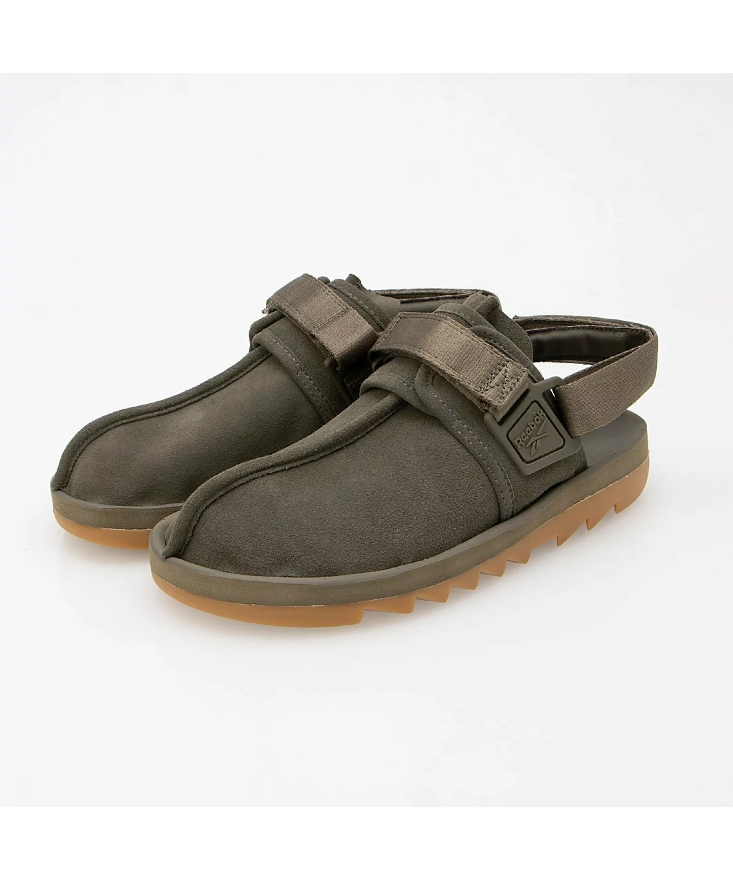 〈リーボック〉のアウトドアサンダルは、アッパーに上質なスエード、靴底に悪路でも歩きやすいシャークソールを採用。厚手のソックスを合わせれば真冬のキャンプでも重宝する。かかとをホールドするストラップは、フィット感の調整がしやすいのもポイント。