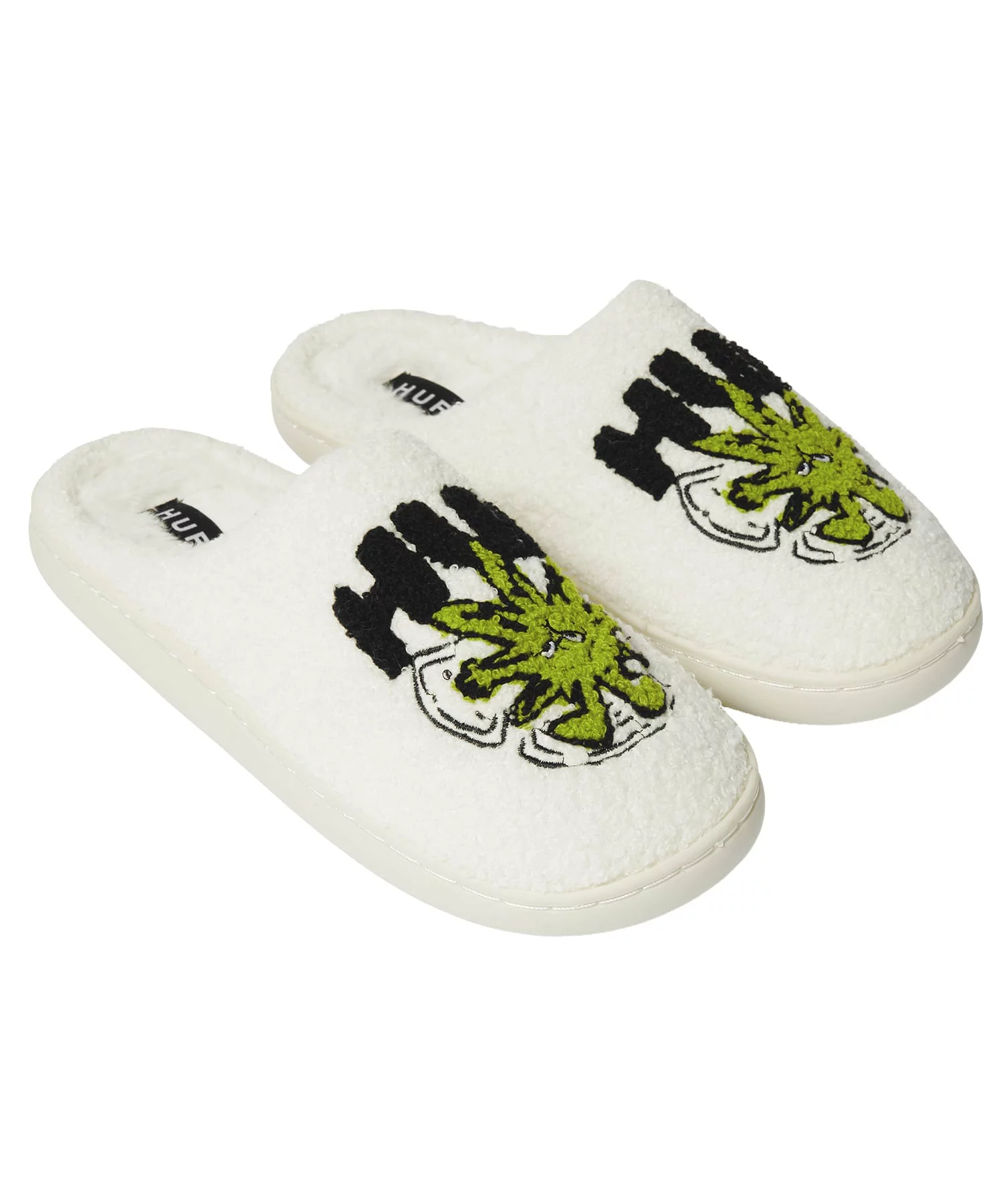 〈ハフ〉の2025年冬コレクションは、ブランドの基本となるグラフィックにフォーカス。ふんわりと柔らかいポリエステルのアッパーに、印象的なアートワークを施した。アウトソールはPVCを使用しているため、室内で安定感のある履き心地のスリッパを履きたい人や、外出時にリラックスしたサンダルを取り入れたい人にもおすすめ。